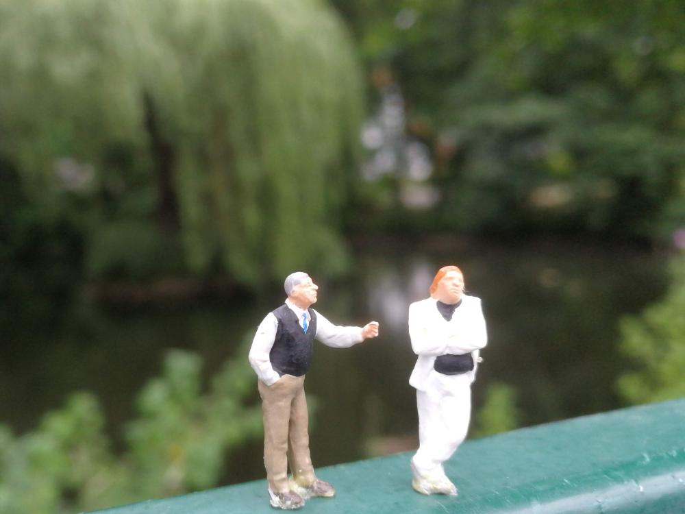 Fotografisch Interessierte werden aufgerufen, Fotogeschichten in Lengerich zu erstellen mit zwei Miniatur-Figuren der Fa. Preiser, die den Titel „Zwiegespräch“ tragen. Die sind für 5 Euro zu erwerben im Fotohaus Kiepker, Bahnhofstraße 36, 49525 Lengerich (solange der Vorrat reicht). Sie können auch bestellt werden bei der Fa. Preiser, www.figuren.de.
